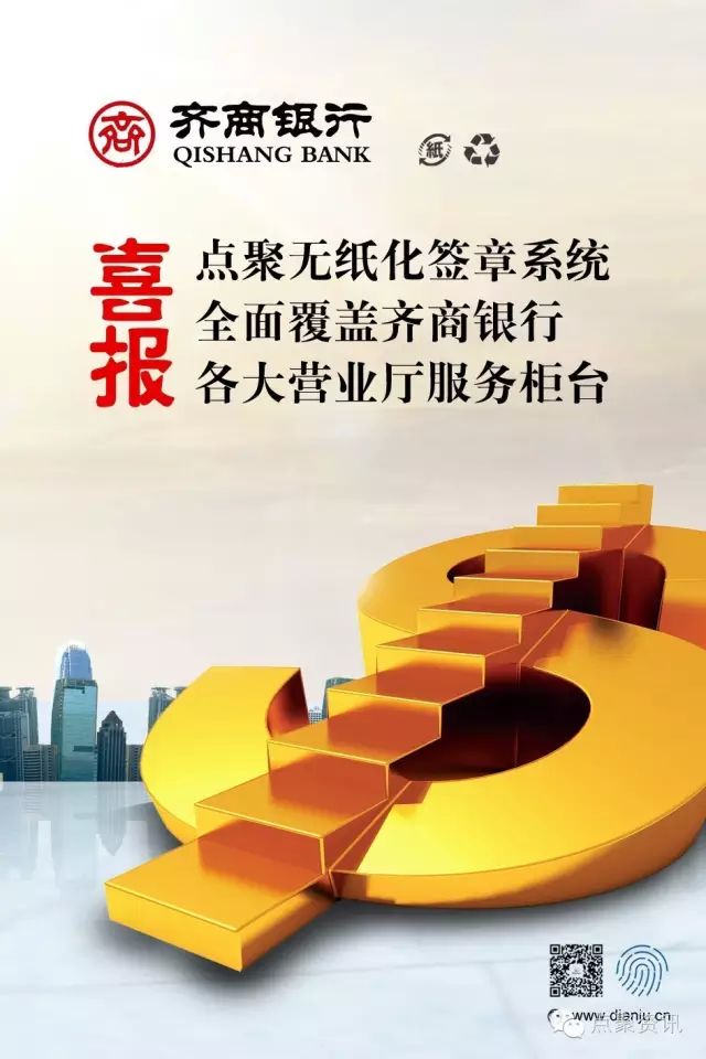 近日,点聚为齐商银行搭建的无纸化签章系统通过一个月的推广部署,已全面覆盖齐商银行各大营业厅服务柜台。