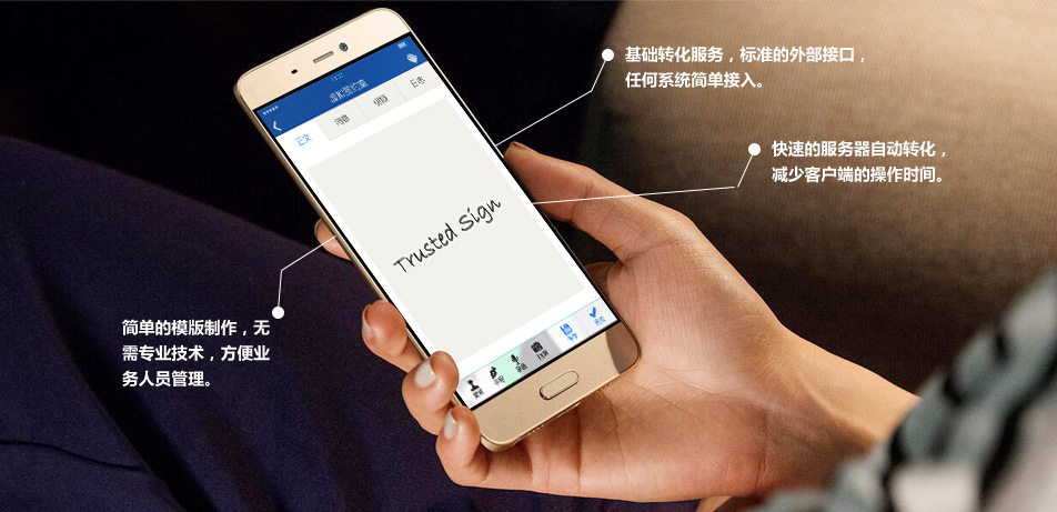 点聚移动手写签章实现在手机中随时随地审批电子表单,完成电子签名和加盖电子印章,满足手机用户在移动终端中电子文档加盖电 子签章的需求,实现手机电子签章审批、多人会签、签章验证、签章显示、签章信息查看、手机与PC机签章的互验、审计日志等功能。同 时保证签章和文档的安全性和有效性。,为用户或各个业务系统提供pdf转化功能,支持http或ftp的word文档提交服务器自动转化pdf; 或者通过业务数据和模版方式服务器直接生成pdf。