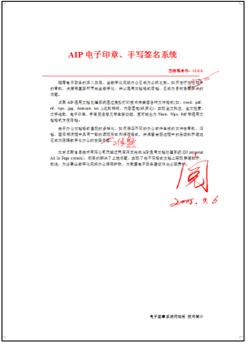 AIP版式文件签章是我司研发的版式文件,通过虚拟打印技术兼容任何打开的文档格式。与原文件的版式、版面、字体、字号保持一致。 支持所有可打印的文档格式。主流文件格式有:Word、Excel、PowerPoint、WPS等编辑文档,BMP、JPG、PNG、GIF等图片格式, PDF、AIP、CEB、SEP等版式文件,HTML网页文件。支持在C/S平台、B/S平台应用开发平台中嵌入整合。控制文档的打印、保存、复制、 脱密,保证电子文档脱离应用系统的安全。支持自定义的表单技术,允许与页面数据交互,形成版式文件。