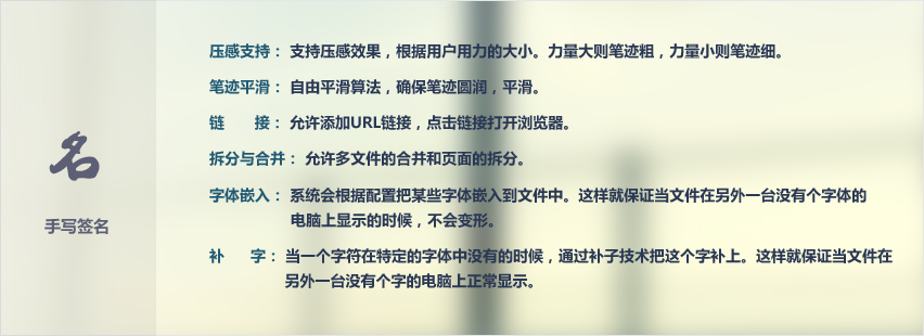 功能强大,具有传统的手写功能和各种文档和印章的安全控制等功能