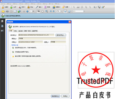 TrustedPDF是点聚基于PDF文件开发的一个安全套件,主要功能是通过电子签名技术保证PDF文件的安全和可鉴别。 允许用户在PDF文件上实现电子签章、手写签名、骑缝章等应用。TrustedPDF是一个ActiveX控件, 提供近300个开发接口供第三方软件调用。